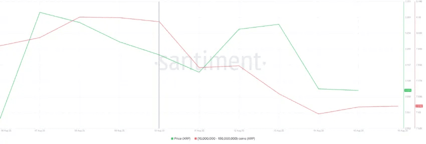 Au cours de la semaine dernière, les adresses de trading détenant entre 10 et 100 millions de XRP ont vendu environ 400 millions de tokens, d'une valeur estimée à 1,2 milliard de dollars américains. Cette quantité de liquidation a exercé une pression considérable sur le marché, contribuant aux récentes fluctuations.