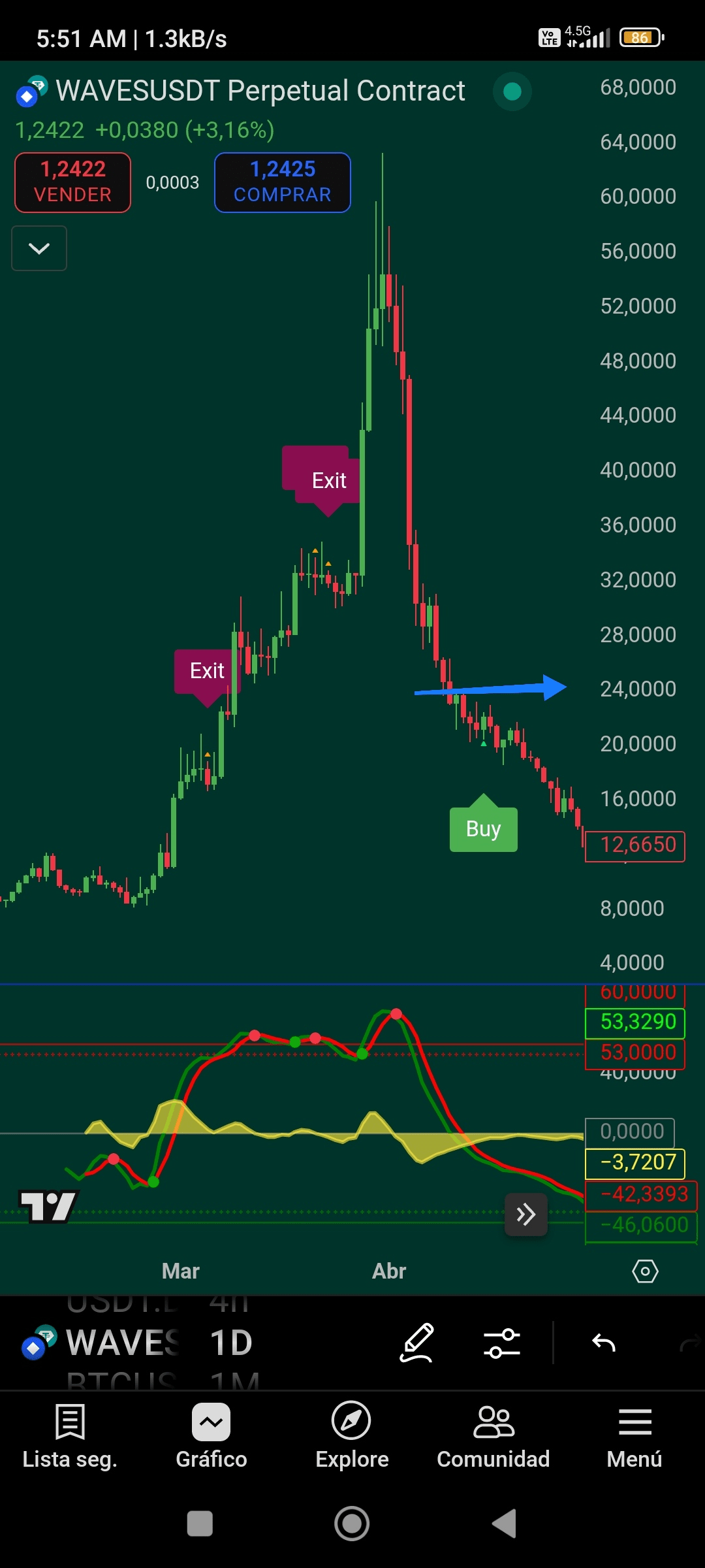 Leçons que donne la vie, c'était l'année 2022, j'avais peu de temps d'expérience en trading uniquement sur le spot, je n'avais pas l'expérience pour effectuer une analyse technique, je ne savais pas reconnaître une fausse tendance et il y avait une monnaie qui ne cessait de monter et qui a attiré mon attention #waves j'ai décidé d'acheter après une importante chute, je l'ai achetée à 24usd sans connaître la profondeur de la chute, je pensais que depuis ces niveaux de prix, elle continuerait avec sa tendance haussière mais cela ne s'est pas produit, la monnaie ne cessait de tomber, j'ai profité d'un petit rebond qu'elle a fait depuis 4usd jusqu'à 10usd, j'ai décidé de sortir en assumant une perte.