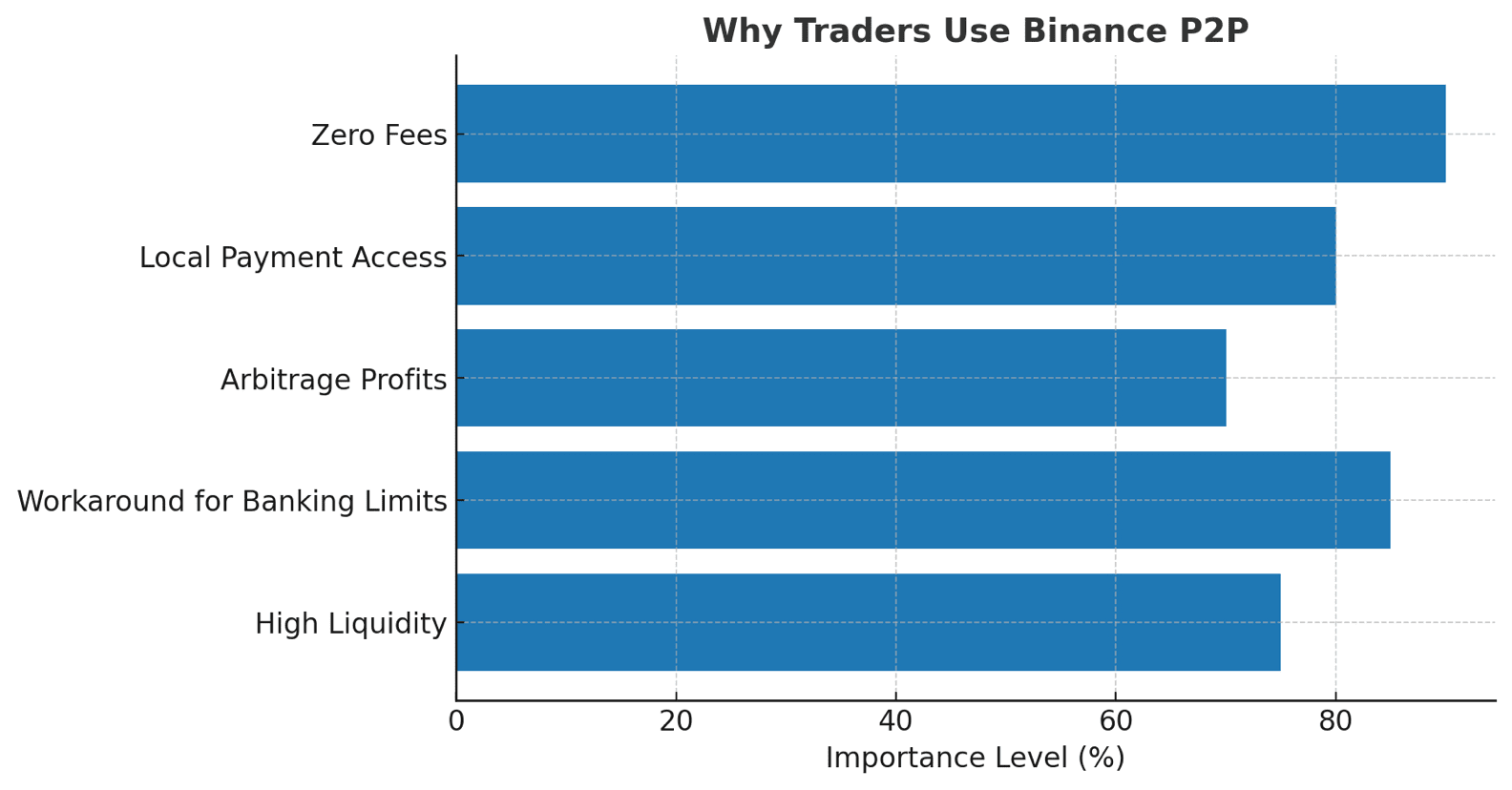 Flexibilité de paiement local → Dans les pays avec des restrictions bancaires, le P2P permet des rampes d'accès directes.