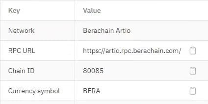 Adresse du robinet : https://artio.faucet.berachain.com/