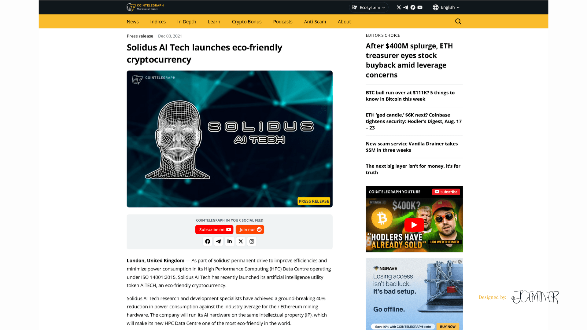 À mesure que la crypto-monnaie mûrit, les projets qui équilibrent innovation et durabilité définiront la prochaine vague d'adoption. Solidus AITECH montre que l'IA, la blockchain et les pratiques écologiques peuvent coexister et prospérer.