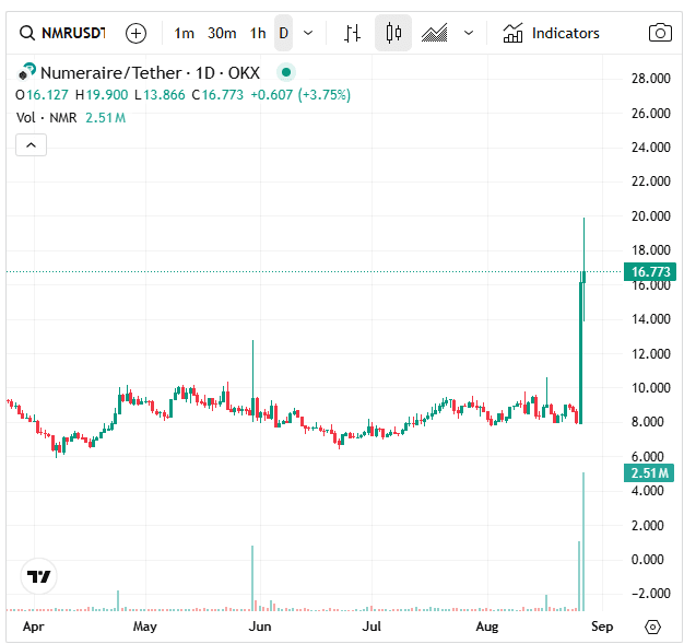 Cependant, cela ne semble pas intéresser les marchés : il a suffi d'associer le nom de NumerAI à JP Morgan, l'un des allocataires les plus importants au monde, pour faire grimper le prix du token au double de la valeur des 24 heures précédentes.