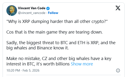According to top analysts like Vincent Van Code, XRPâs "heavier" dump isn't just bad luckâit's structural:
