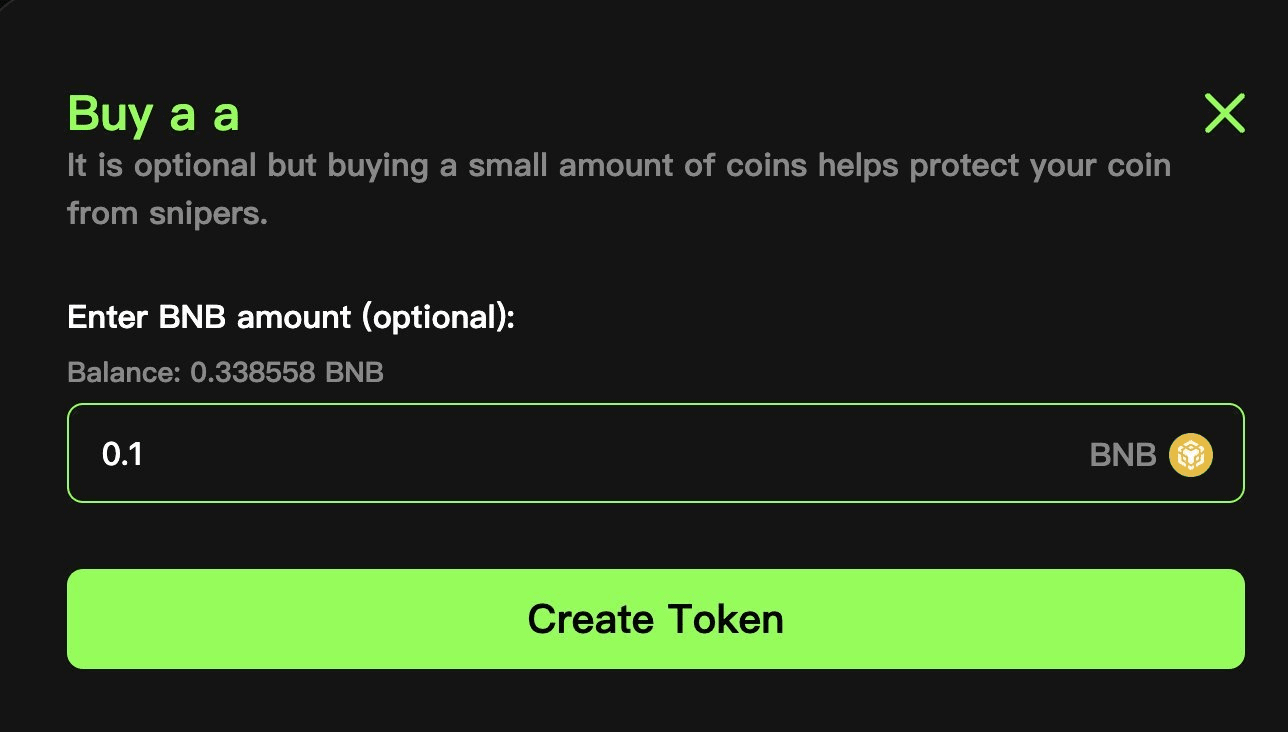 Créez vous-même des jetons + achetez 0.1 BNB :