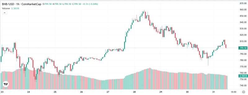 La pièce Binance (BNB) est en hausse de 24 % ce mois-ci, atteignant 807,8 $, tandis que Binance prépare une mise à niveau rapide du réseau de portefeuille de 15 minutes pour améliorer la sécurité et les performances.