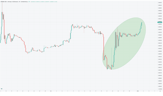 Après la mise en ligne de l'échange MEME, les jetons ont augmenté en raison d'une augmentation significative de la liquidité, l'aidant à atteindre un niveau record de 0,047 $ le 6 décembre.