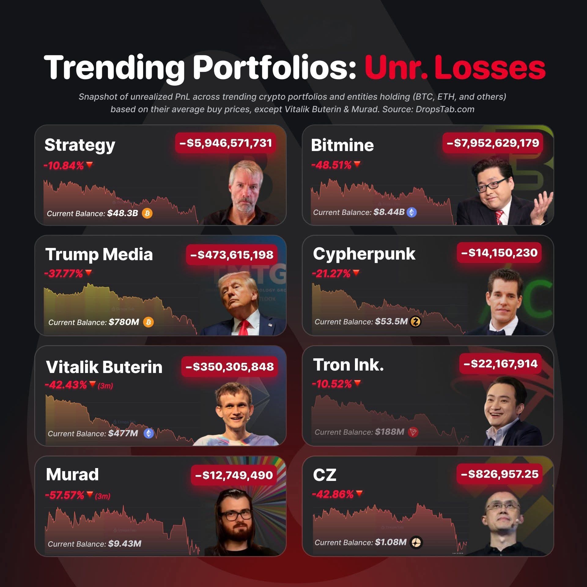 De nombreux portefeuilles crypto de haut niveau affichent de lourdes pertes non réalisées