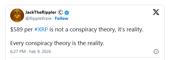Dans le monde de la crypto, des prĂ©dictions audacieuses font souvent face au ridiculeâjusqu'Ă ce qu'elles ne le soient plus. Bien qu'un objectif de 589 $ par $XRP puisse sembler de la science-fiction pour certains, un segment dĂ©vouĂ© de la communautĂ©, dirigĂ© par des voix comme JackTheRippler, soutient que c'est une question d'inĂ©vitabilitĂ© structurelle. đ