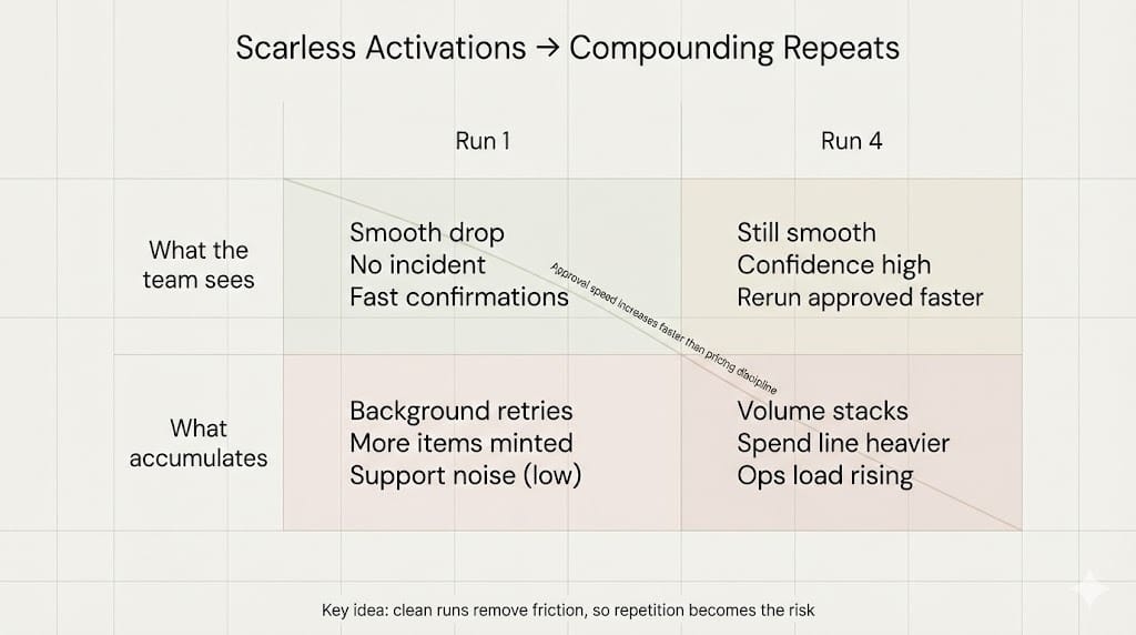 The old configuration surfaced for users who were already warm before the final tweak propagated. Their cross-title spine never dropped, so their context never refreshed. They weren’t “re-entering” the activation. They were continuing it, same session window, same session token, still treated like it’s the same moment.
