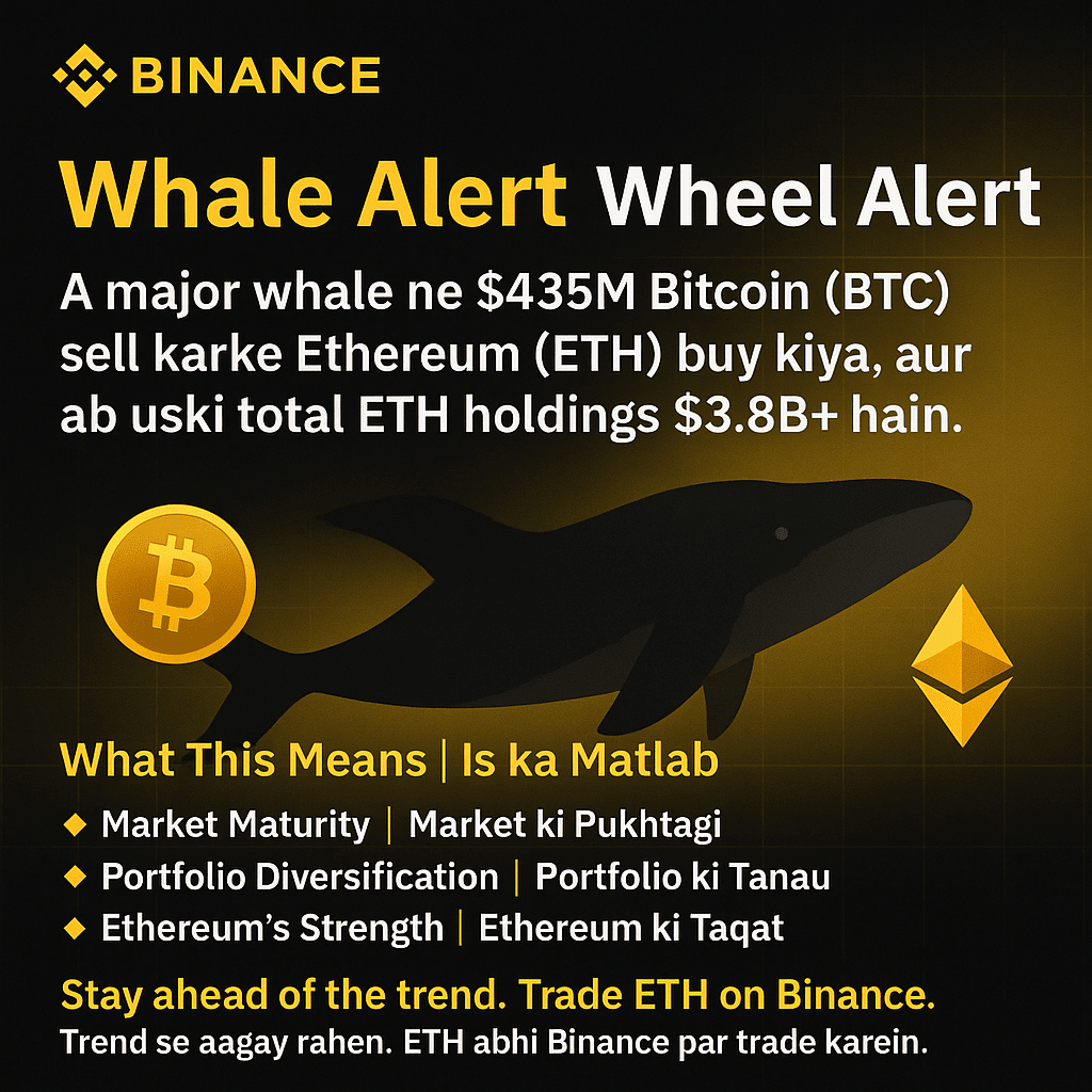 Une baleine majeure a vendu $435M de Bitcoin (BTC) pour acheter de l'Ethereum ($ETH ), et maintenant ses avoirs totaux en ETH s'Ă©lĂšvent Ă plus de $3.8B. đ