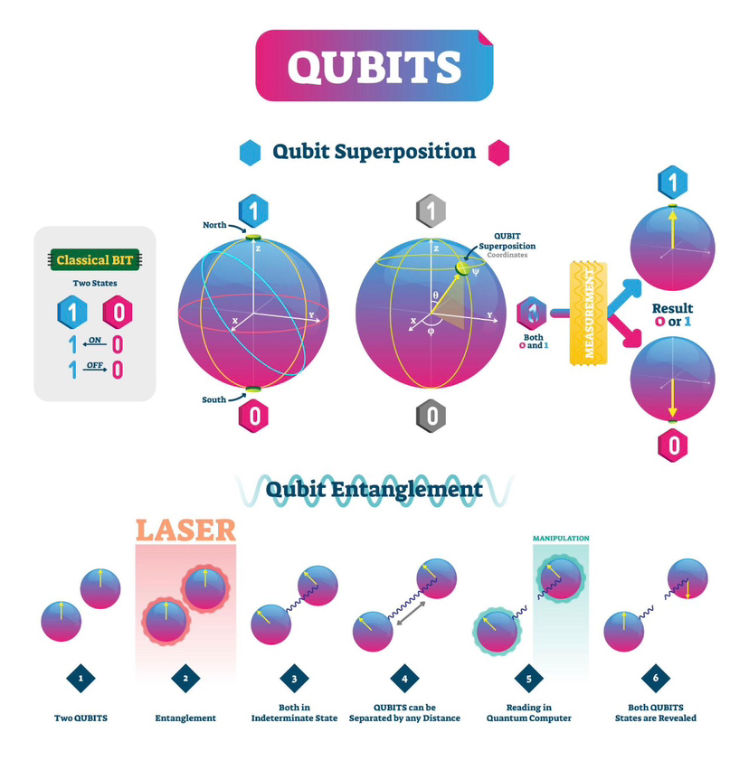 Quantum computing is a new type of computing based on the rules of quantum physics. Normal computers use bits. A bit is simple. It is either 0 or 1. Every app every website every crypto wallet works using billions of these tiny 0 and 1 signals switching on and off very fast. Quantum computers use something called qubits. A qubit is different because it can be 0 and 1 at the same time. This is called superposition. It also uses something called entanglement where qubits become connected in a special way. This allows quantum machines to explore many possibilities at once instead of checking them one by one.