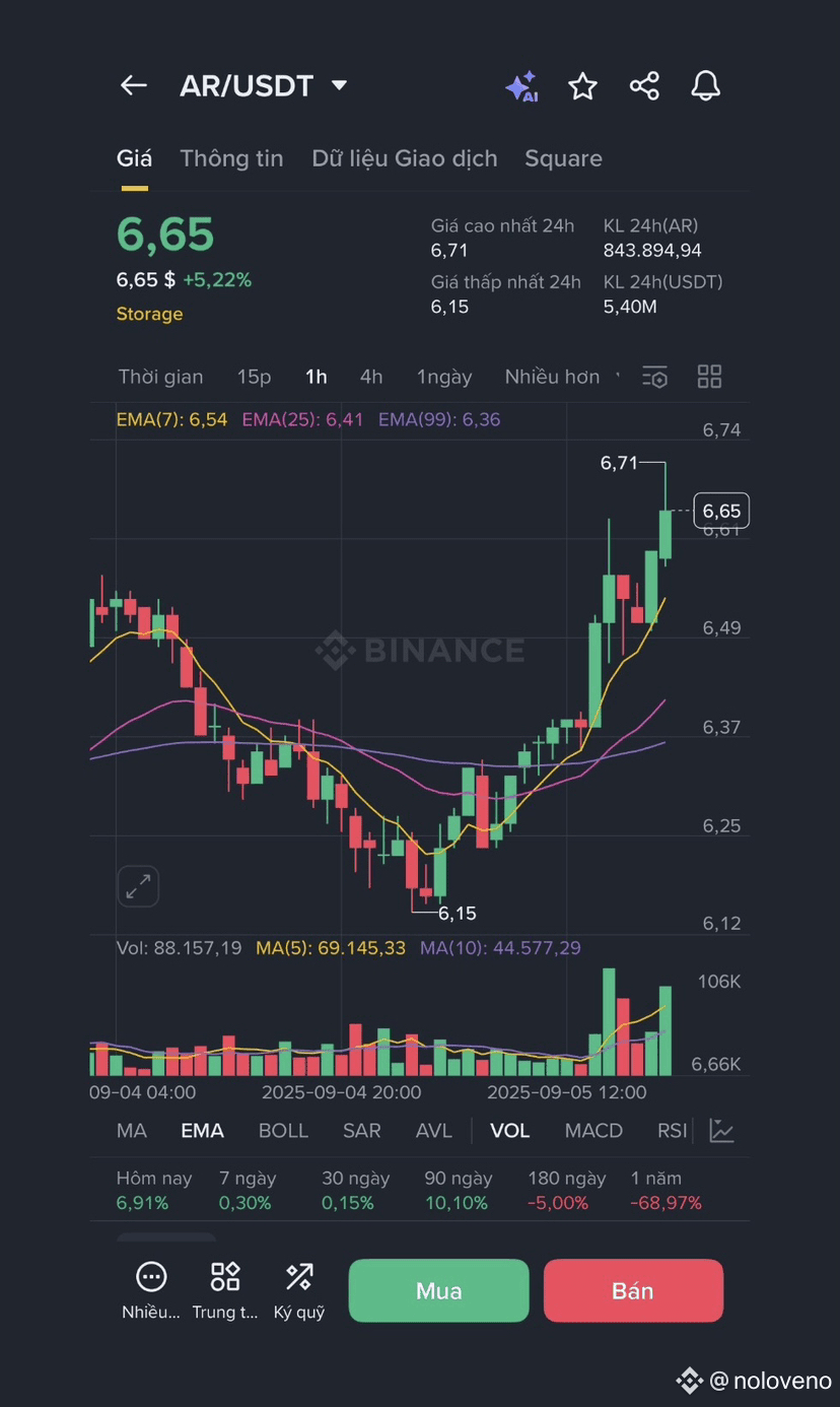 Từ đáy 6.15, $AR đã có một cú phục hồi hình chữ V gần như hoàn hảo, tăng một mạch thẳng đứng và phá vỡ mọi ngưỡng cản ngắn hạn.