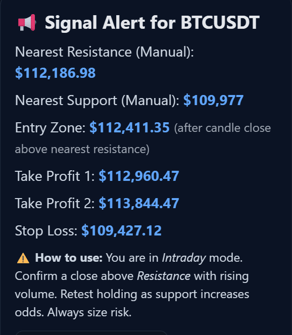 Verdict : Bitcoin montre une cassure intrajournalière haussière avec un momentum croissant, un soutien défendu et des cibles claires à la hausse. Si la résistance est maintenue et que le volume se soutient, le BTC pourrait avancer vers 113K+ à court terme, faisant de cela une configuration à haute probabilité pour les traders de cassure.