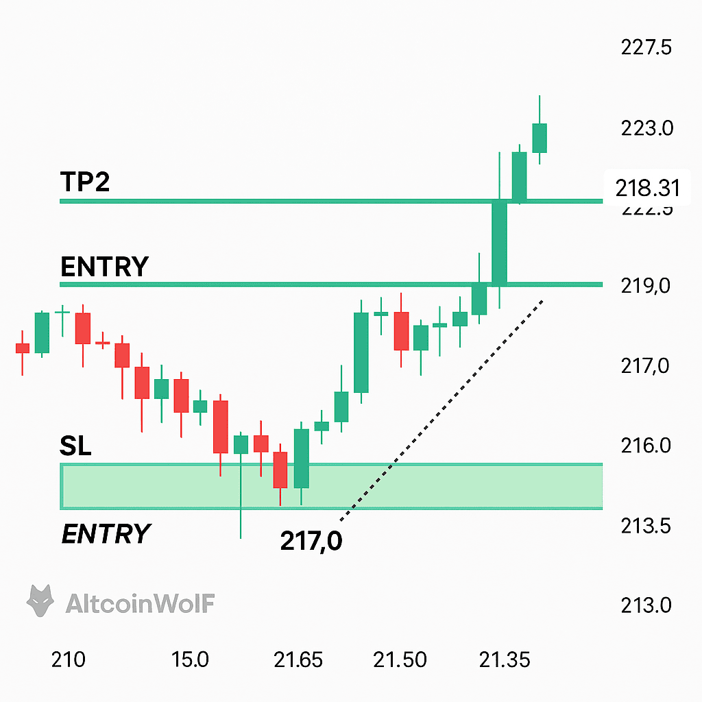 Stop Loss (SL) : En dessous de 213.5 (sous MA25 & support récent).