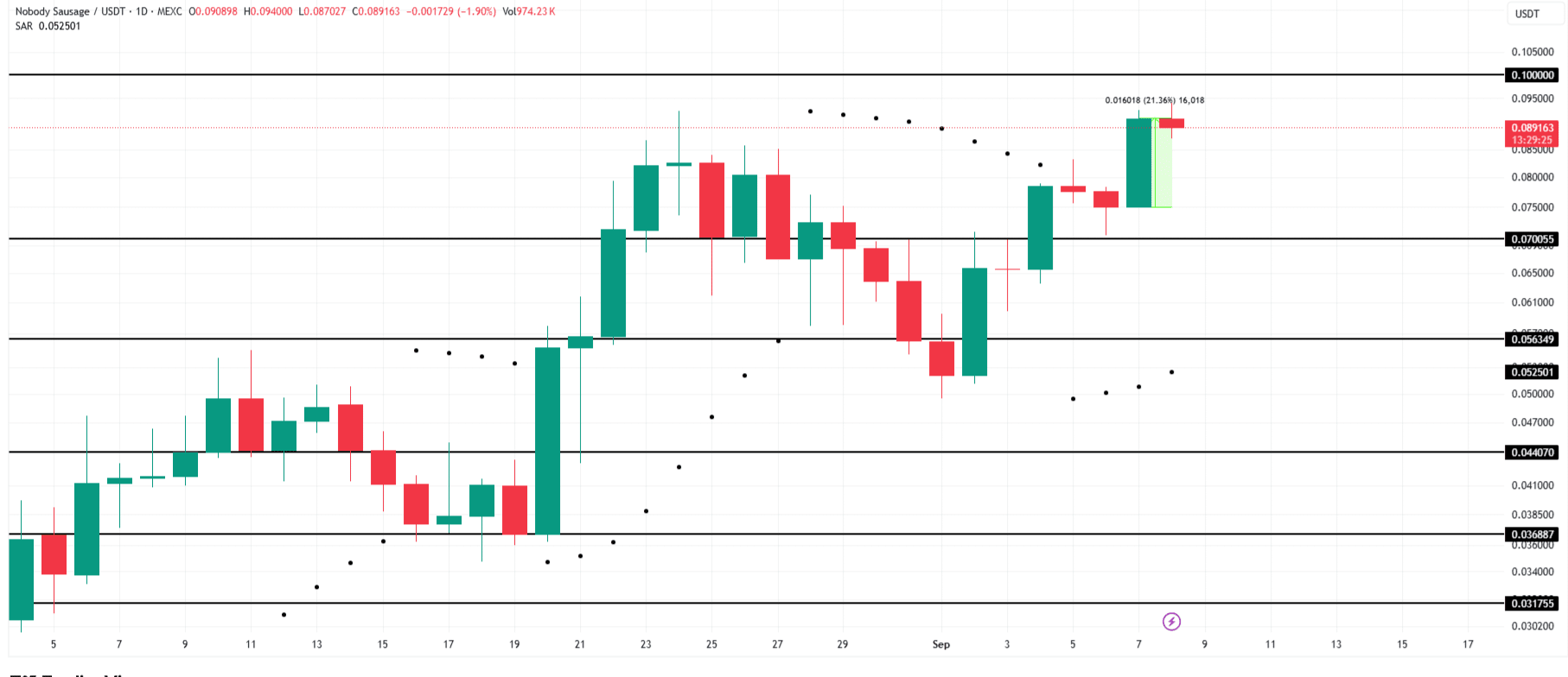 NOBODY a attiré l'attention des investisseurs, grimpant de 21,3 % au cours des dernières 24 heures pour atteindre 0,089 $. L'impulsion du memecoin reste forte, et selon les sentiments du marché, cette hausse pourrait se poursuivre la semaine prochaine avec un soutien actif des acheteurs.