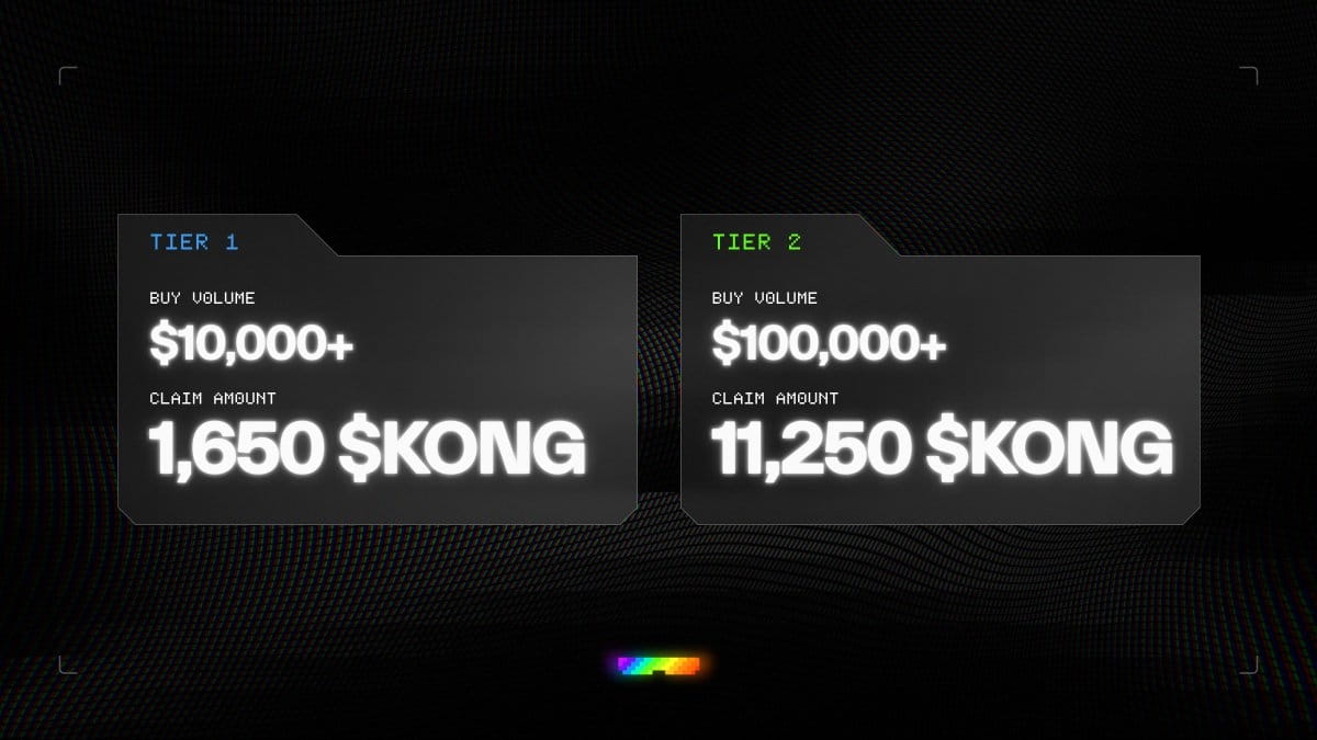 Niveau 2 : Les personnes ayant des achats > 100 000 $ seront éligibles pour recevoir 11 250 KONG
