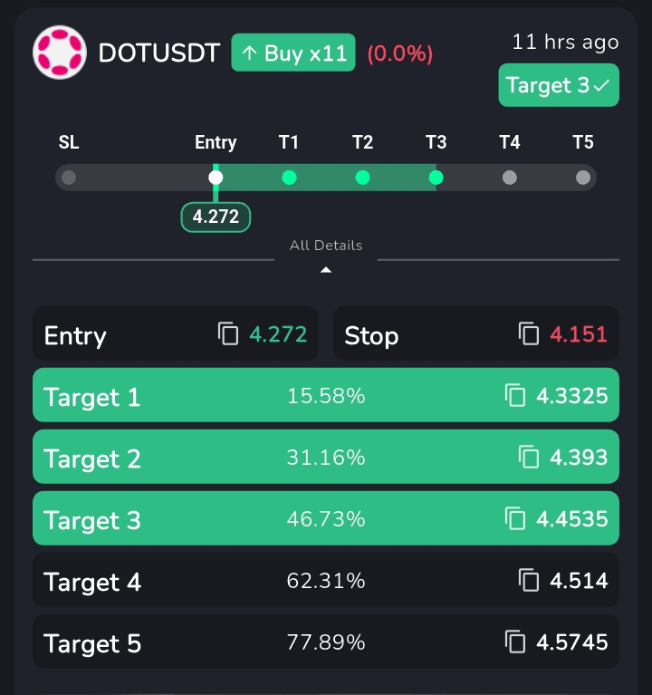 5. Le signal a déjà atteint 3 cibles, cela se passe très bien.