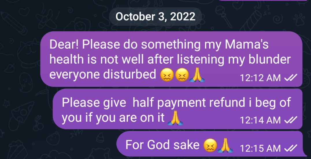 Voici mes derniers messages car je les ai trouvés je suppose que c'était le gars qui est avec des arnaqueurs ils ont lu mes messages et m'ont bloqué ! 🙂