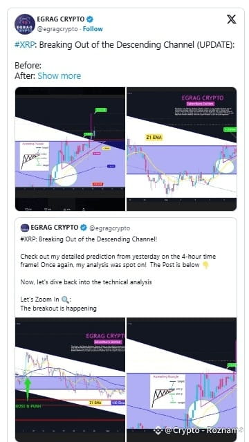 L'analyste crypto Egrag Crypto l'a encore fait 🎯. Après des semaines d'action serrée, XRP a officiellement rompu son canal descendant — exactement comme ses graphiques 4H l'avaient prédit! ✅✨