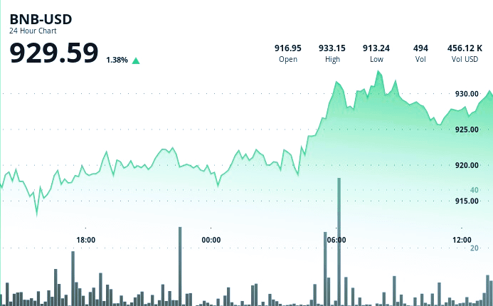 BNB a augmenté de 1,4 % en une journée, atteignant \$933,03. La rupture de la résistance a été accompagnée d'une augmentation des volumes.