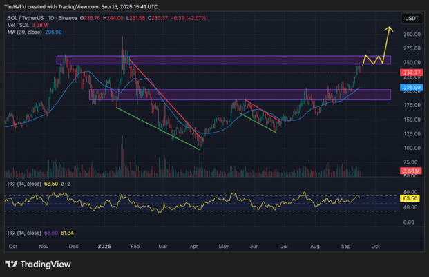 Monnaie Solana (Solana) : l'enthousiasme concernant ses fonds négociés en bourse (SOL ETFs) et l'expansion de la blockchain pourraient pousser son prix à quadrupler d'ici Noël.