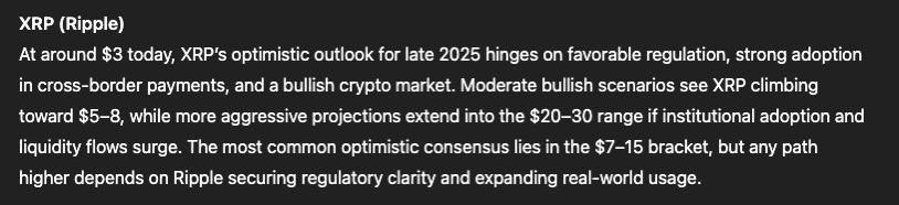 Selon les prévisions du modèle ChatGPT, le prix de la monnaie Ripple (Ripple) pourrait atteindre 30 $ fin 2025, ce qui signifierait un multiplicateur de 10 par rapport à son prix actuel de 3 $.