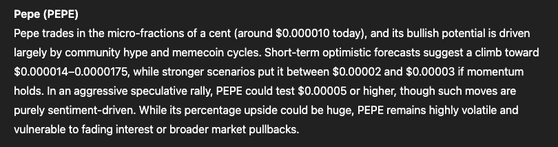 Monnaie Pepe (Pepe) : le modèle de ChatGPT prévoit un quintuplement de la valeur de la principale monnaie meme non inspirée par des races de chiens.