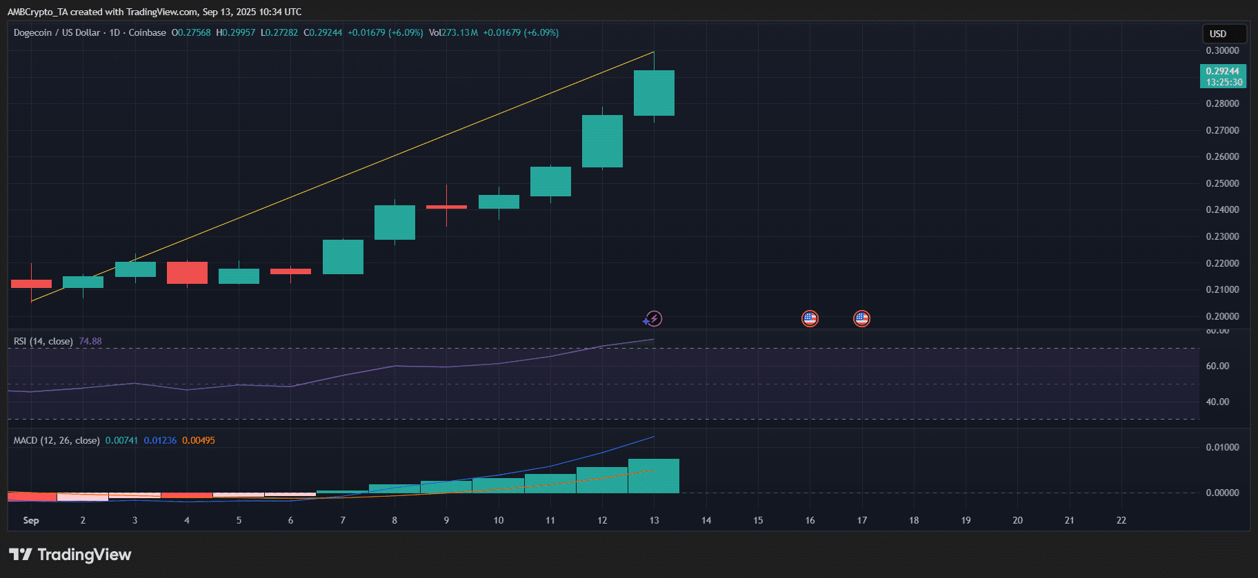 En seulement une semaine, Dogecoin a enregistré une augmentation de près de 30 %. Cela montre que même lorsque les conditions du marché changent, DOGE a toujours la capacité d'attirer une attention forte de la part des investisseurs.