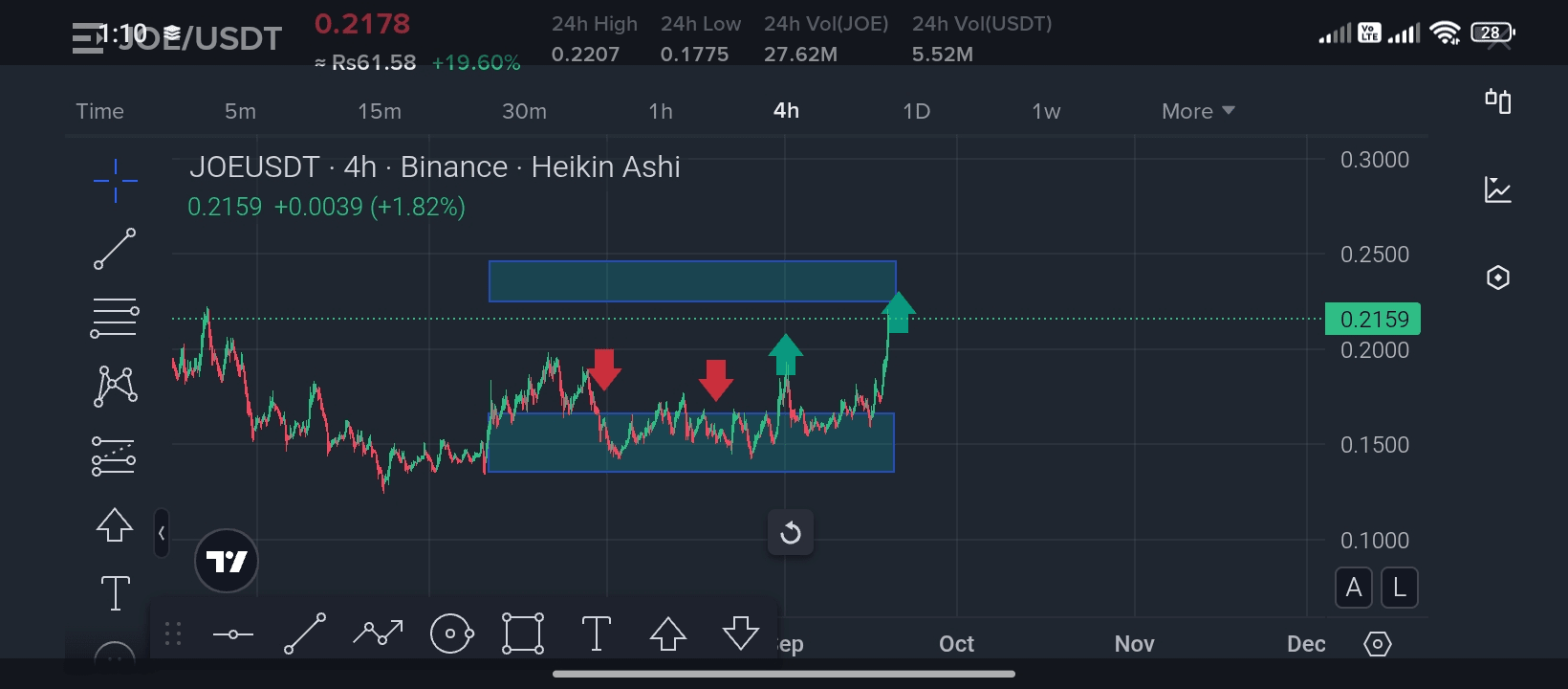 Le marché des cryptomonnaies ne dort jamais, et les opportunités se cachent toujours dans les graphiques pour ceux qui ont l'œil aiguisé 👀✨. Aujourd'hui, examinons de plus près JOE/USDT sur le timeframe 4H (bougies Heikin Ashi). L'action des prix montre une structure intéressante qui mérite notre attention.