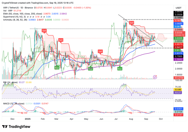 Cependant, l'indicateur de convergence divergence de la moyenne mobile (MACD) renforce une prise de pouvoir haussière cachée, maintenant un signal d'achat depuis le 8 septembre. Si les traders réagissent au signal et augmentent leur exposition, un rebond immédiat pourrait se produire à partir du soutien de 3,00 dollars. La reprise d'ici renforcerait les chances que XRP teste la résistance à 3,35 dollars et le niveau record à 3,66 dollars.