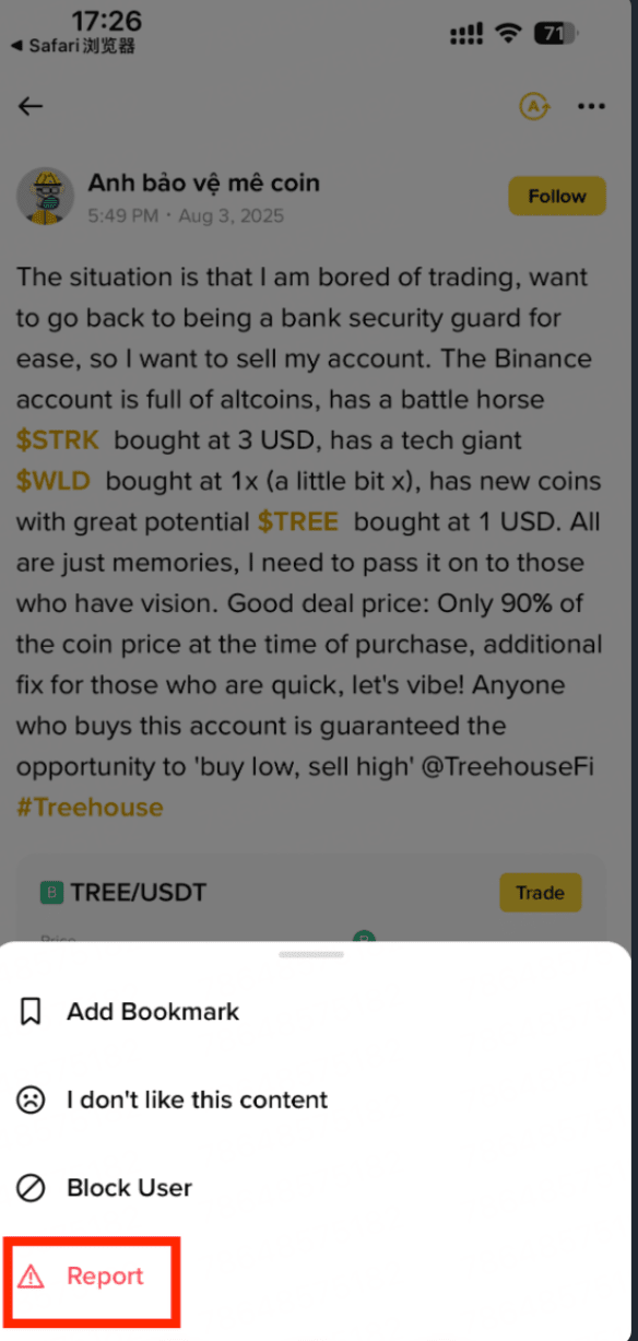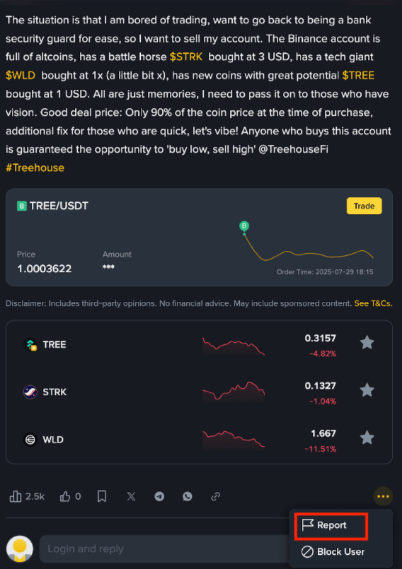 Si vous repérez un compte d'occasion en vente sur Binance Square, veuillez le signaler immédiatement en cliquant sur [Signaler]. Ensemble, nous pouvons rendre l'espace Web3 plus sûr pour tous.