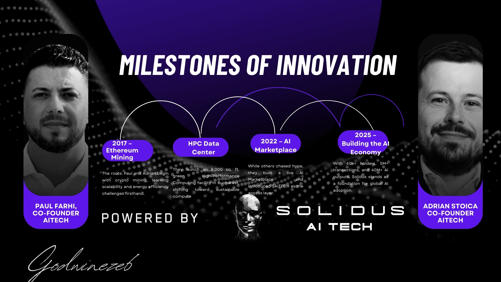 En 2022, alors que le marché bourdonnait de spéculations, Paul et Adrian ont fait un mouvement audacieux. Ils ont orienté Solidus vers le calcul IA, lançant un marché AI en direct et introduisant le token $AITECH — une passerelle pour les développeurs, les entreprises et les communautés pour accéder à la véritable puissance de l'IA. C'était un mouvement rappelant le premier pari d'Amazon sur le cloud computing : construire l'infrastructure avant que le monde ne réalise qu'il en a besoin.