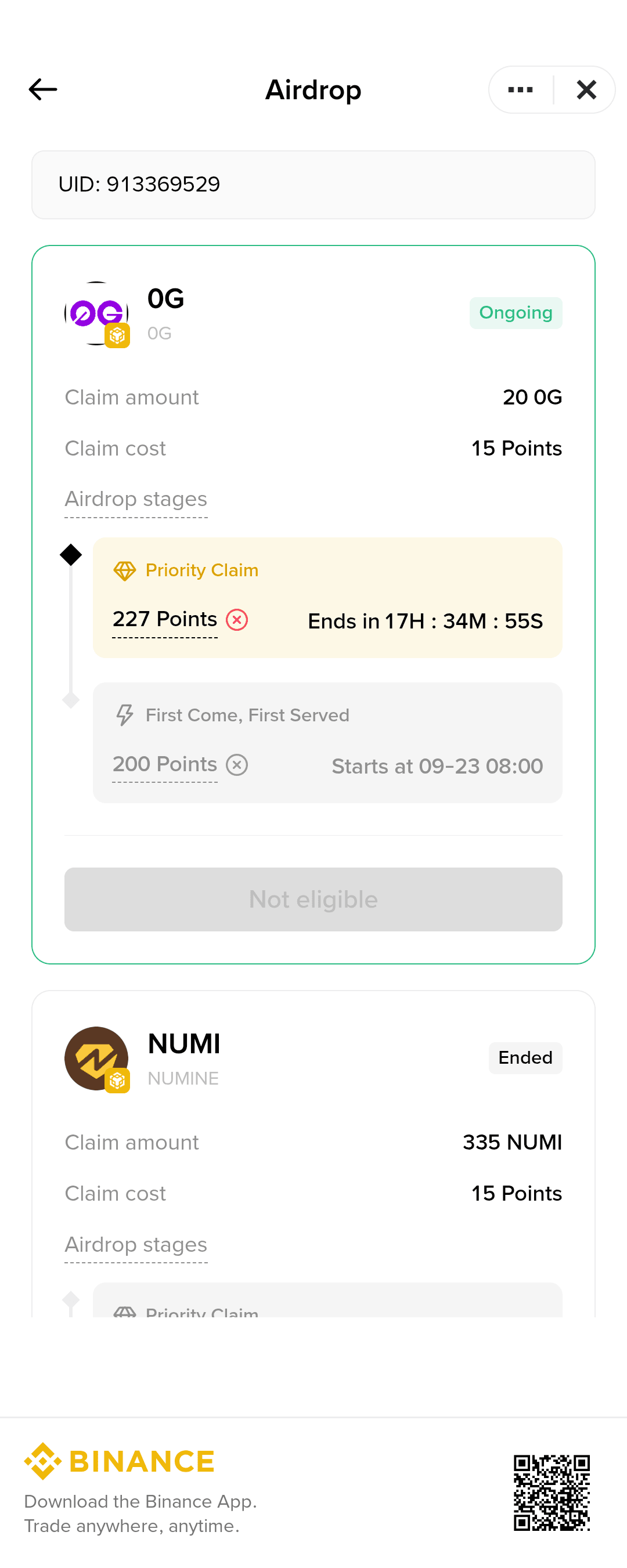 Environ 100đČ Binance Alpha Airdrop. Ătes-vous en train de rĂ©clamer. 20 OG Token Environ 100đČđ€ $OG