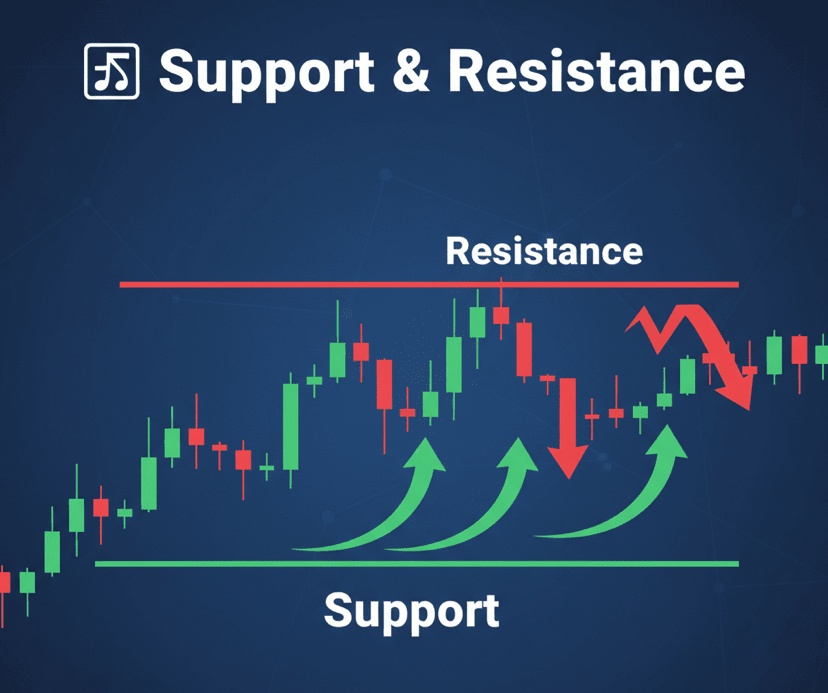 Пример: BTC спира спада около $25,000 → подкрепа.
