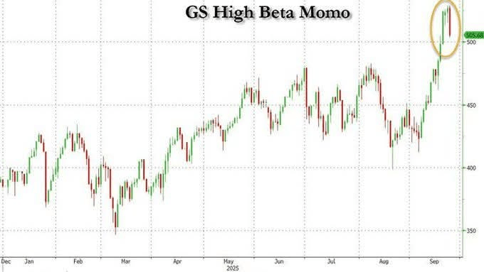 Le deuxième graphique montre la performance du panier d'actions à forte bêta et à forte dynamique de Goldman Sachs - les noms les plus risqués et les plus sensibles au marché.