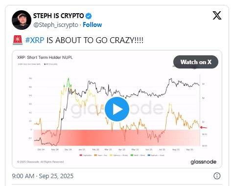 Actuellement, l'indicateur est dans la zone orange 🟠, avec les détenteurs à court terme s'approchant de la capitulation. L'analyste a noté qu'historiquement, les phases orange et rouge ont souvent fourni des points d'entrée forts 💪. Par exemple, en décembre, lorsque la ligne est passée au vert, XRP a atteint un maximum local avant de subir une correction. En revanche, en juin et novembre, lorsque la métrique est devenue rouge, cela a coïncidé avec des niveaux de prix minimaux, avec $XRP rebondissant significativement dans les semaines suivantes. Selon Steph Is Crypto, cette histoire suggère qu'une nouvelle chute à court terme pourrait marquer une opportunité importante. 💎