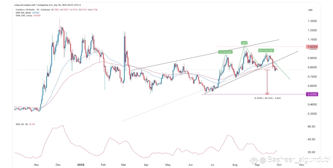 انخفضت عملة كاردانو ( $ADA ) إلى 0.7736 دولار أمريكي، وهو أدنى مستوى لها منذ 12 أغسطس، مما يعكس أداء معظم العملات البديلة مثل إيثريوم وسولانا.