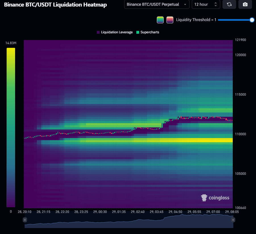 Dans la carte thermique de liquidation, il montre également le signe court, donc il est confirmé que le BTC ira près de 109k à nouveau. Et vous pouvez prendre une entrée courte.