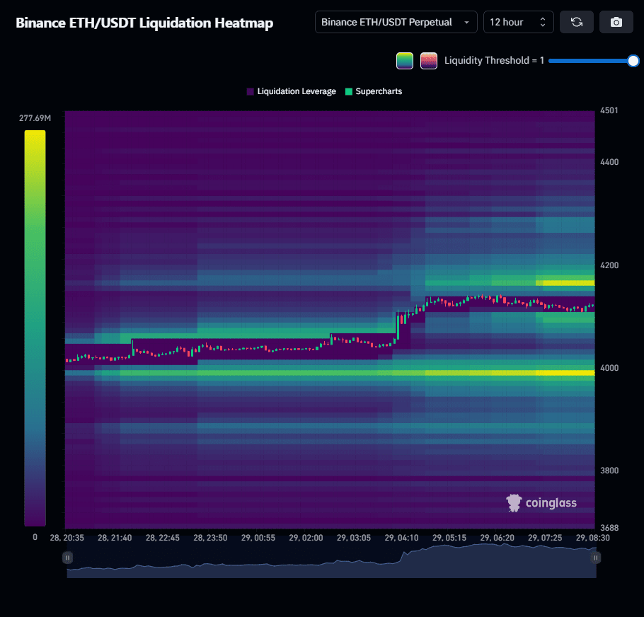 nous pouvons également voir une carte thermique de liquidation où ETH montre également qu'il peut aller dans une zone de vente à découvert, au début ETH peut monter un peu puis il chutera fortement à nouveau. Donc restez à l'écart des positions longues.