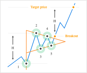 Visualisation des tendances : dans le modèle Rising Pennant, la phase de consolidation, caractérisée par des prix fluctuants dans une fourchette convergente, est visuellement similaire à un drapeau fanion. Cette visualisation aide les traders à reconnaître la tendance et à se préparer aux mouvements potentiels du marché.