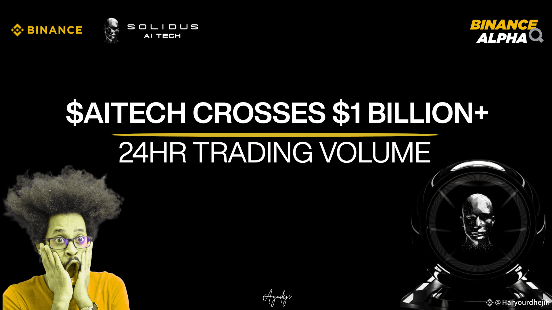 Today I will be shifting our focus to $AITECH which is building a big momentum on #Binance Alpha, After surpassing a Billion dollar Trade volume in 24 hours and also securing the #3 spot by volume. This milestone speaks about the importance of community participation and also the rapid interest in AI powered Blockchain which is set to shape the world.