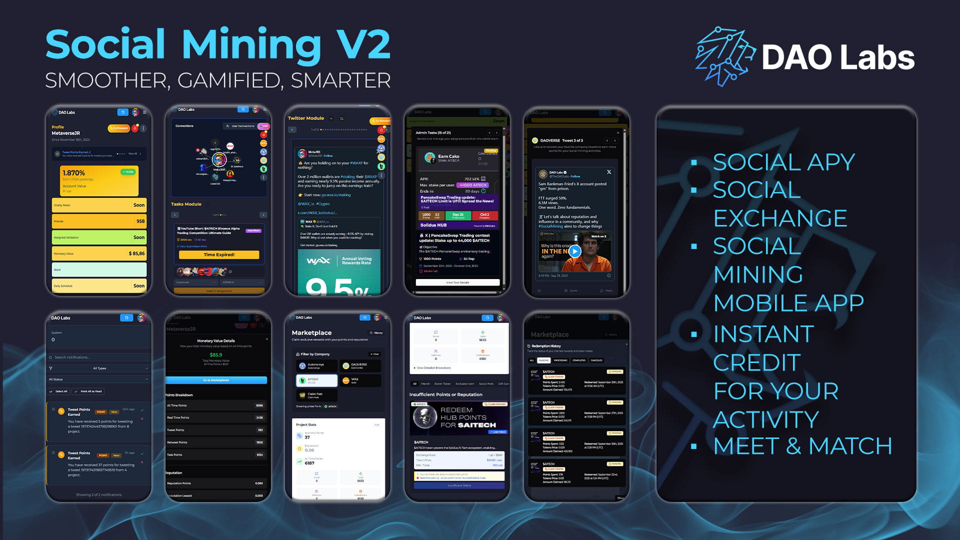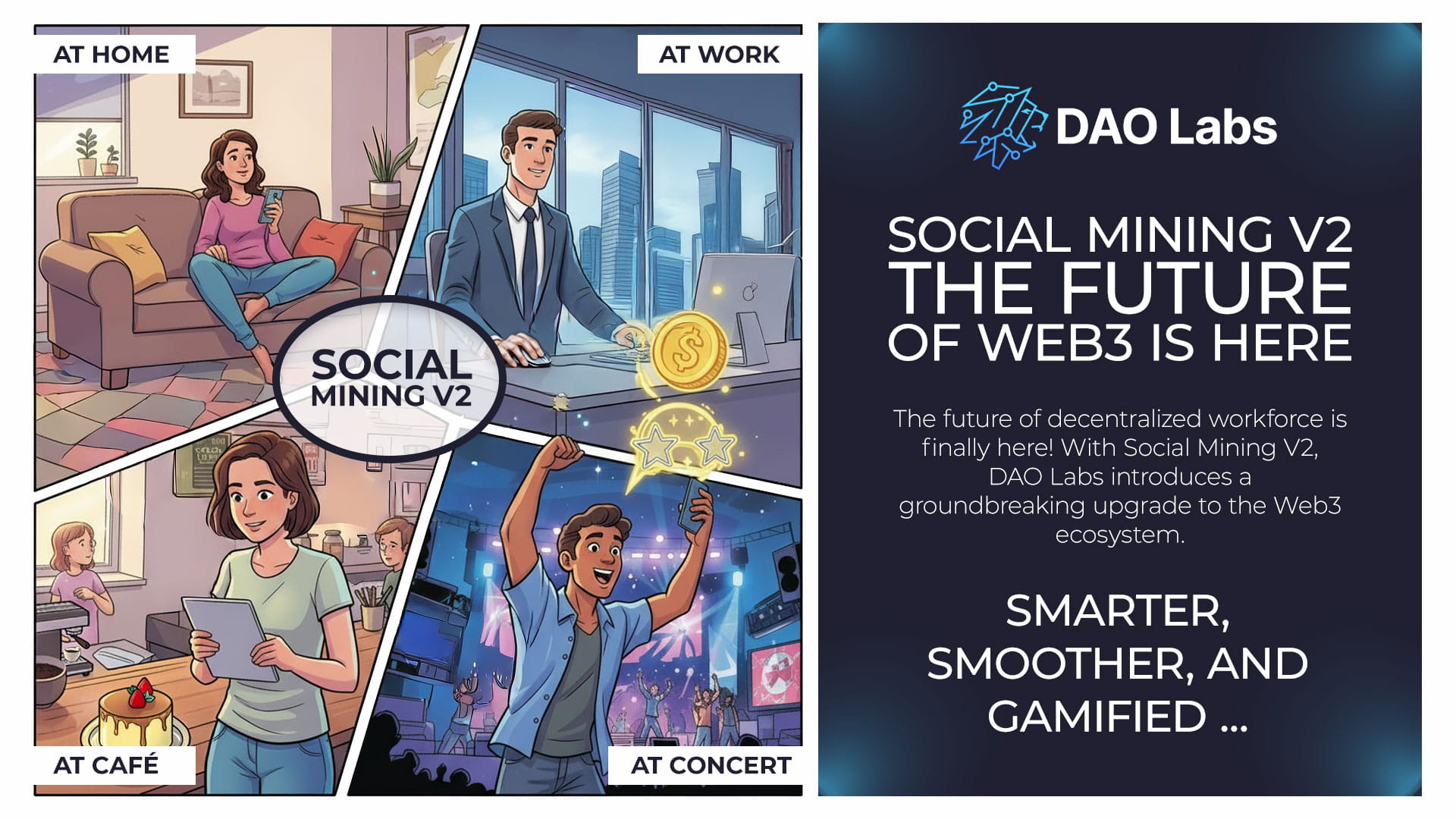 L'avenir de la #labor décentralisée est ici ! @DAO Labs livre une mise à jour révolutionnaire à l'écosystème Web3 avec #SocialMiningV2 . Préparez-vous à découvrir la véritable valeur de vos contributions avec une expérience plus intelligente, plus fluide et gamifiée...