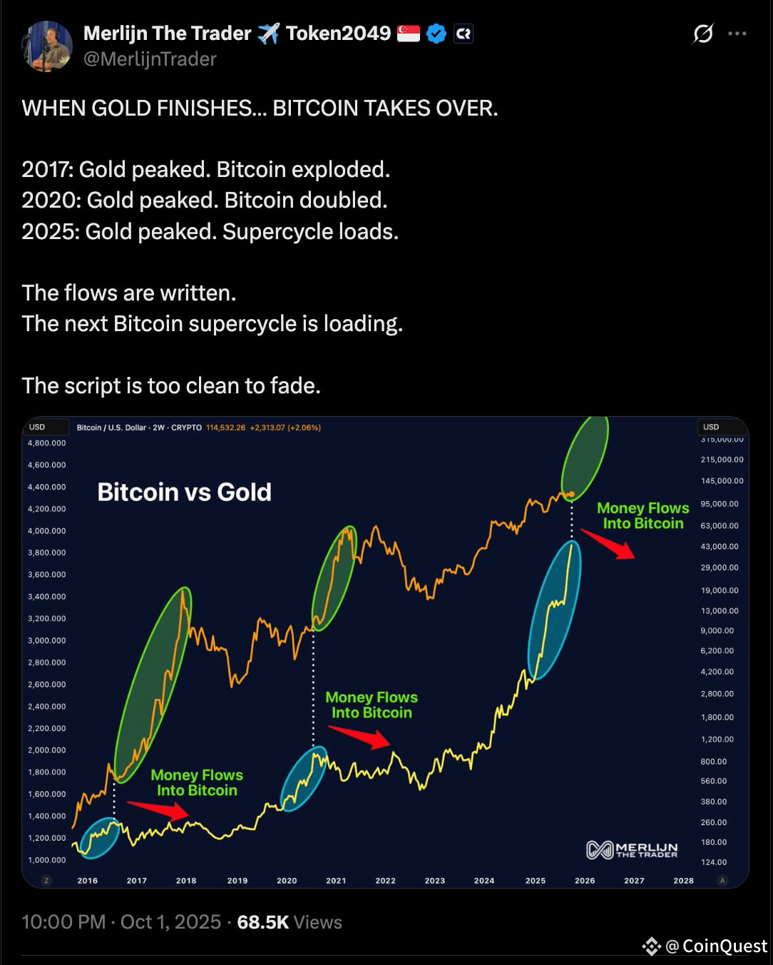 Gold, often viewed as Bitcoin’s traditional macro counterpart, is up roughly 48% year-to-date, putting it on track for its best annual performance since 1979.