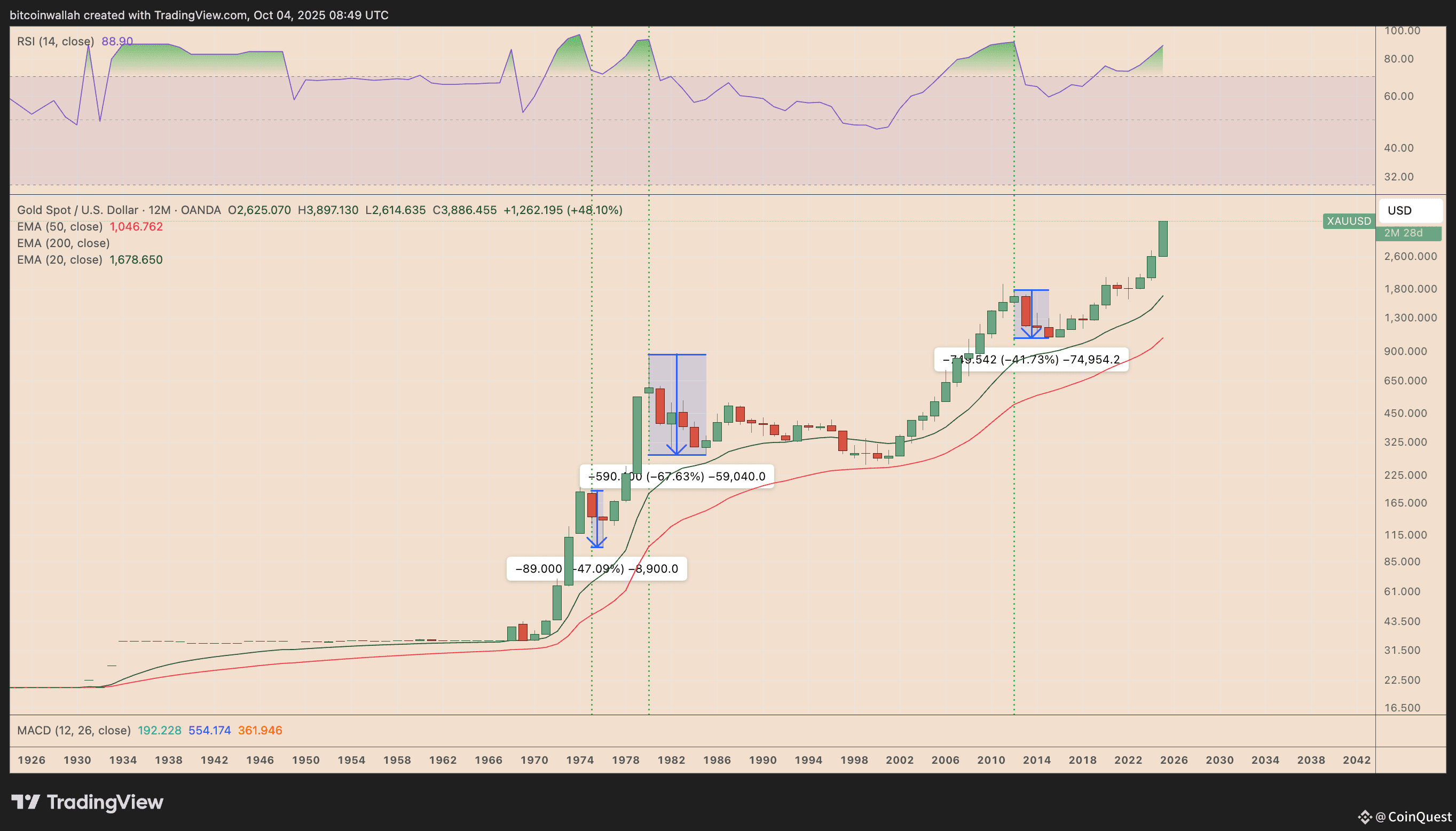 However, the yearly relative strength index (RSI) for the XAU/USD pair has climbed to nearly 89, its most overbought reading since 2012.