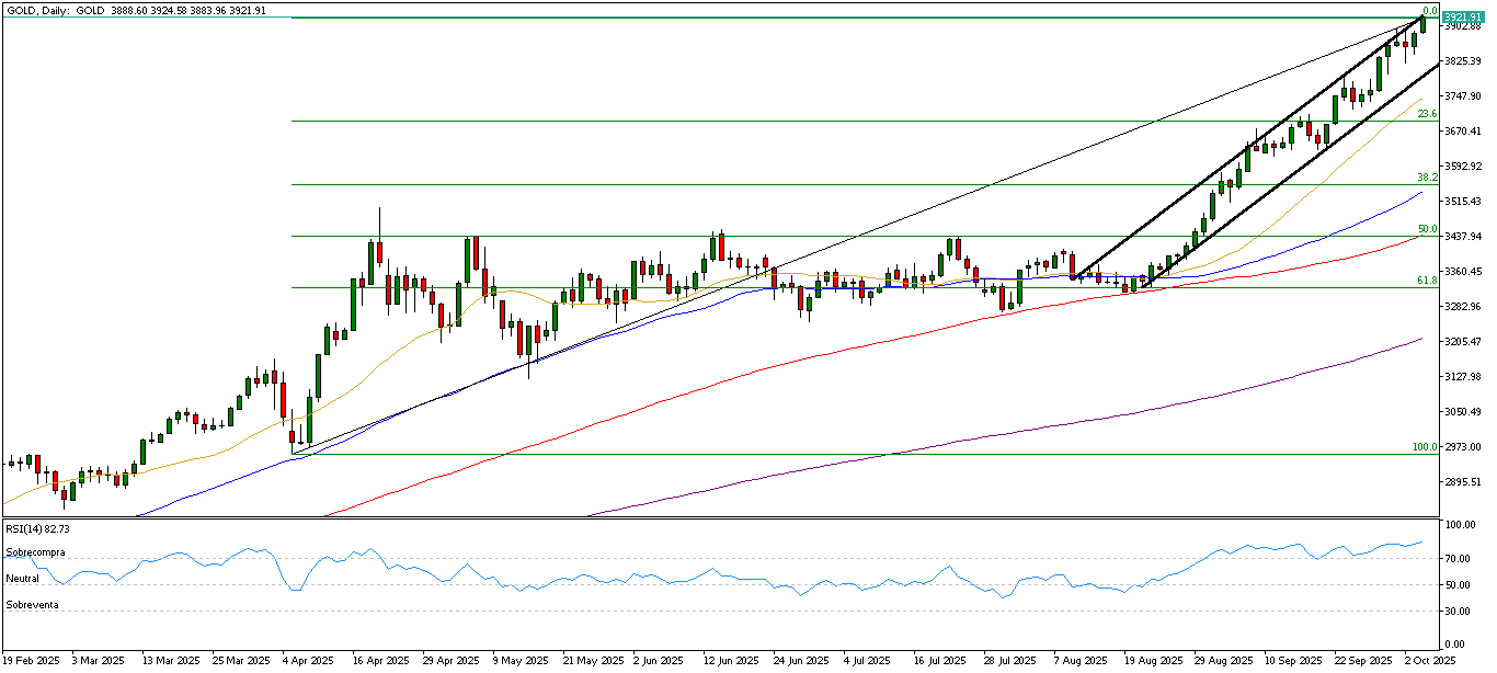 Du côté des retracements, le premier Support Dynamique se trouve autour de 3 820 $, coïncidant avec la limite inférieure du canal ascendant. En cas de correction plus profonde, les niveaux à surveiller sont le Support Critique Historique de 3 707 $ (le pic record précédent) et le niveau de retracement de Fibonacci de 23,6 %, à 3 670 $. Rester au-dessus de ces niveaux est essentiel pour préserver la structure haussière actuelle.