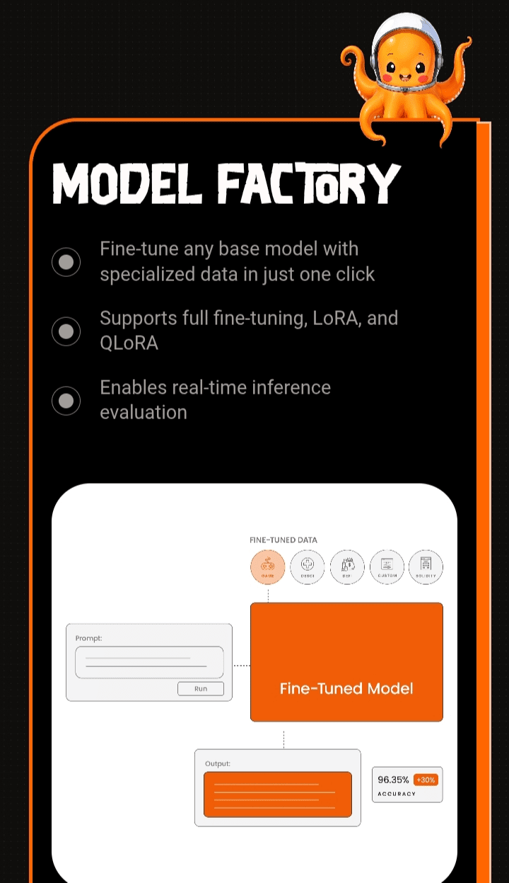 Ce n'est pas seulement une question d'améliorer les modèles ; c'est une question de redéfinir la manière dont l'intelligence personnalisée est produite et monétisée. Grâce au flux de données affiné d'OpenLedger, les utilisateurs peuvent importer des jeux de données spécialisés, les entraîner en toute sécurité et déployer des modèles performants avec jusqu'à 30 % d'exactitude améliorée.