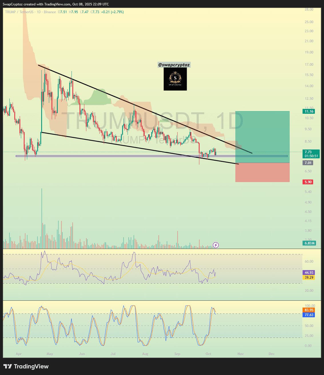 Le prix se déplaçait à l'intérieur d'un motif en coin pendant un certain temps mais a récemment cassé vers le bas, donc il peut continuer à descendre. Le prochain support semble proche de 5.90 et un fort rebond est possible autour de 11.16 si cela se redresse.