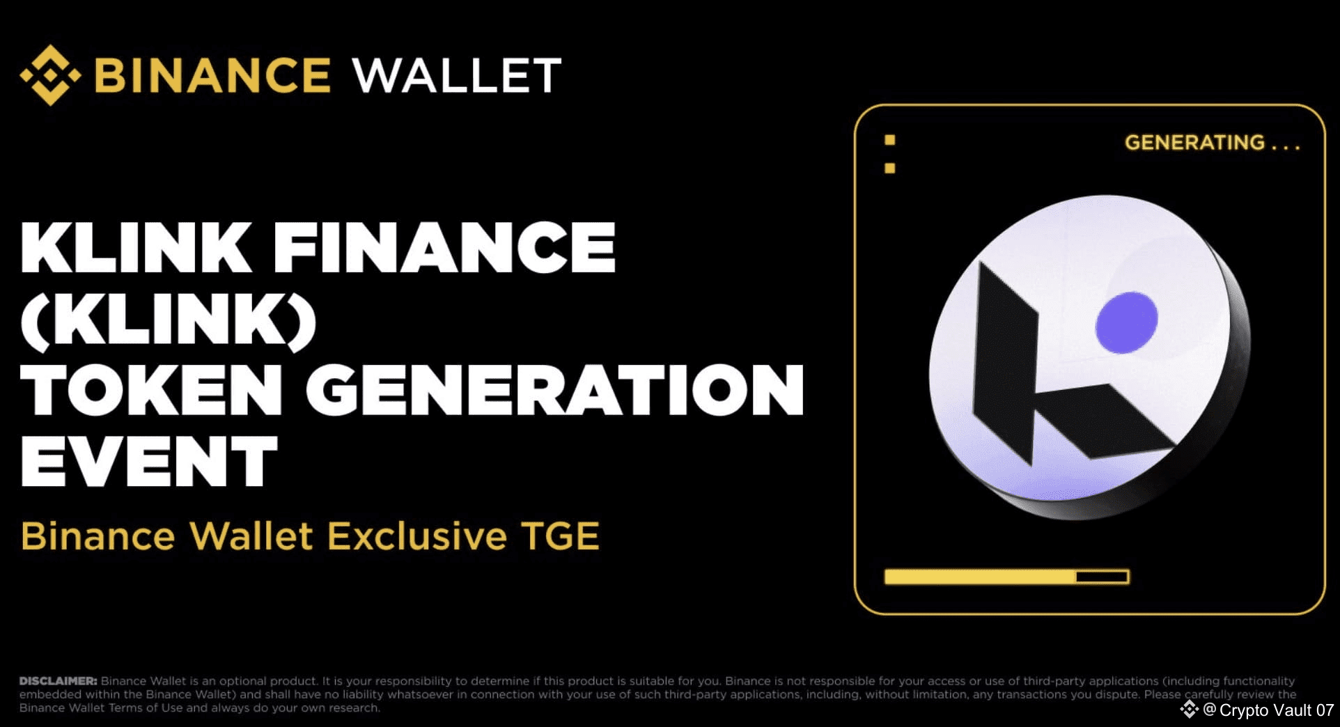 A Binance revelou oficialmente o 39º TGE Exclusivo na Binance Wallet, em parceria com a Klink Finance (KLINK) através do PancakeSwap.