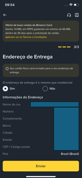 Ce sera l'endroit pour l'envoi de votre carte physique, alors vérifiez tout attentivement. Après avoir révisé, appuyez sur Envoyer.