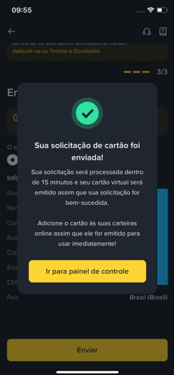 Dès qu'elle sera approuvée, la carte virtuelle sera libérée, et la carte physique envoyée à l'adresse enregistrée.